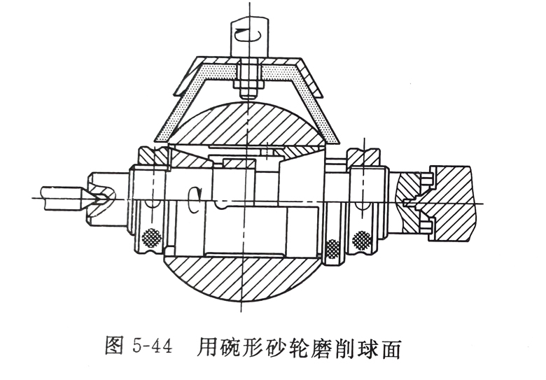 ③球面的磨削 球面可百普通车床或专用机床上用平形砂轮的外圆或碗形砂轮的内侧磨削。