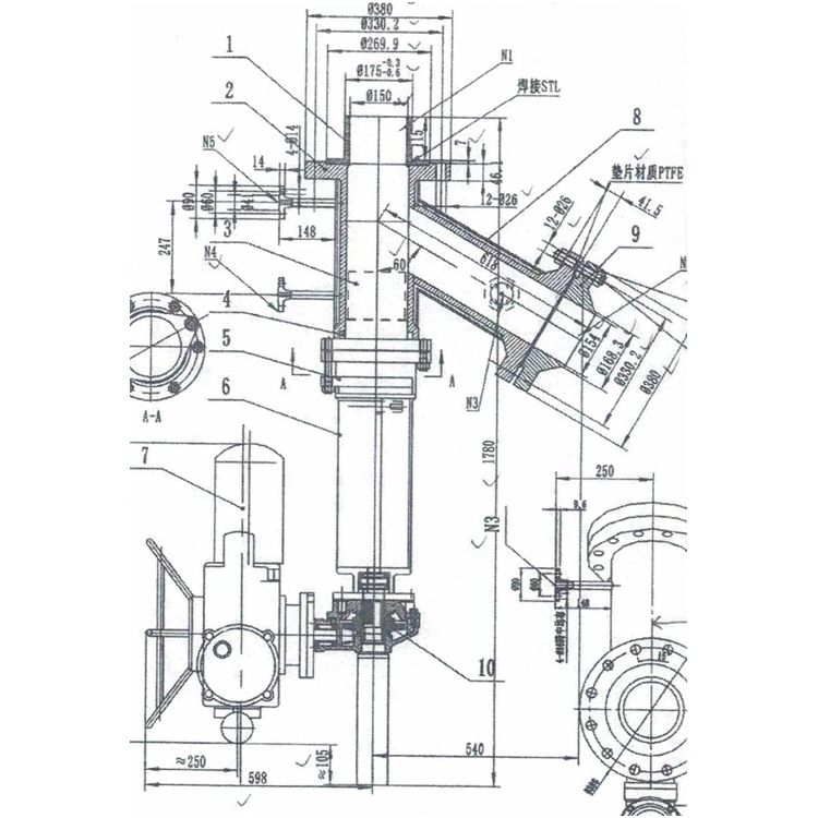 ZCL45Y出料阀主要由阀体、伞齿轮、电动头、柱塞、支架、保温夹套、密封圈、阀杆、阀杆螺母、拉杆等零件组成。本阀门的阀体为不锈钢铸造或焊接而成,进出口成Y形60度。阀体和上盖的连接靠双头拉杆、上盖压紧螺母。ZCL45Y出料阀的密封副由上软密封圈、柱塞组成,当柱塞塞入密封圈内孔时,通过由填料压盖螺母施加在压盖上的载荷把柱塞周围的密封圈压紧,从而保证了密封,当阀门开启抽出柱塞时,密封圈的材料在弹性的作用下恢复原始状态。柱塞经密封磨削及抛光处理后,柱塞上部阀杆铜螺母与阀杆配合。密封圈采用新型无毒非金属材料,具有耐磨及自润滑的功能,密封性能好,使用寿命长。斜式倒装于反应釜便有利罐内介质自身重力及负压、地球引力作用下,介质顺阀体内腔自然流出阀外到管网处,其少部分正压与微小的摩擦阻力。没有影响排量及流速使用要求,与大气隔离状态实现罐液排放要求。满足使用方各样角度及排放量,其他特殊结构的要求。